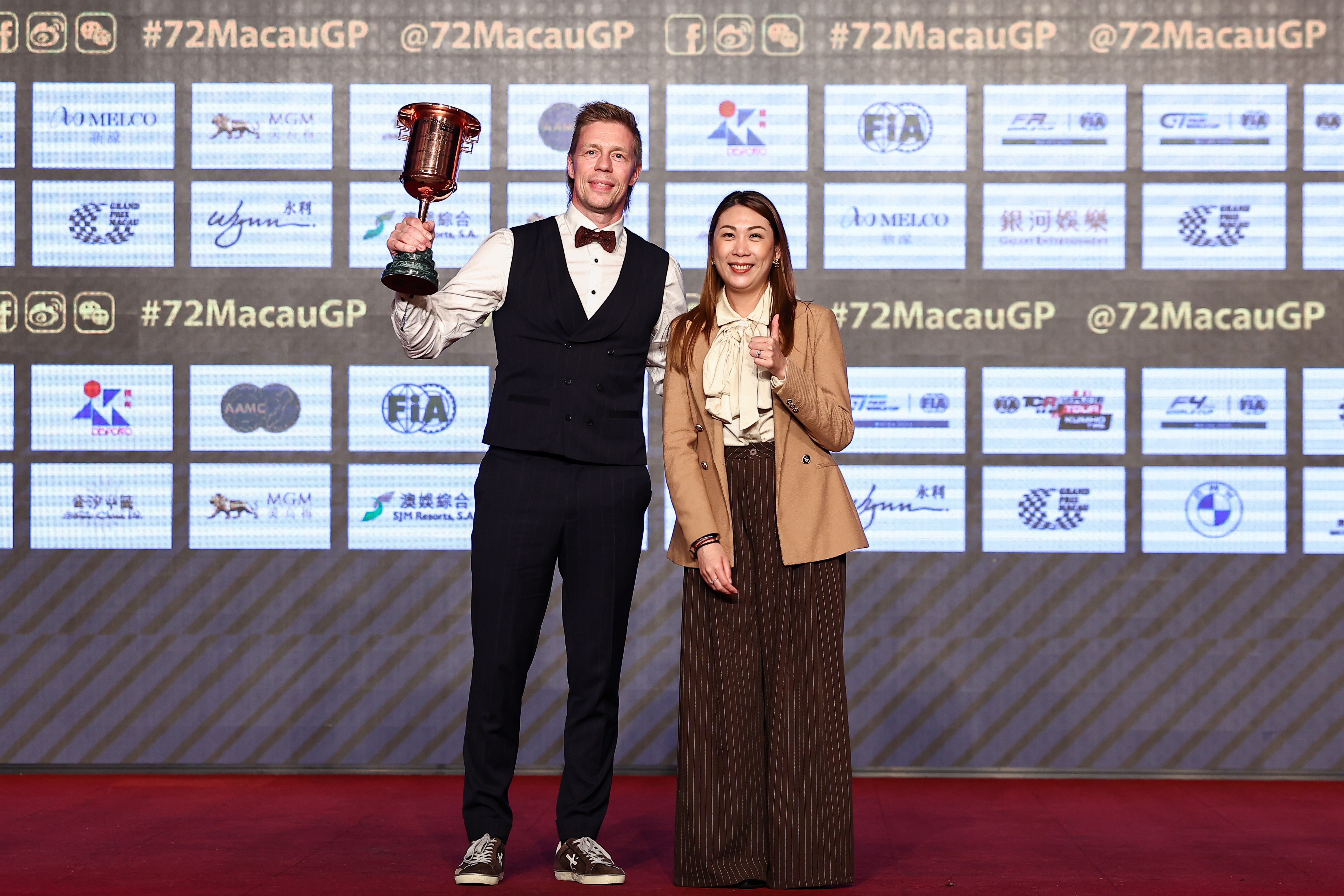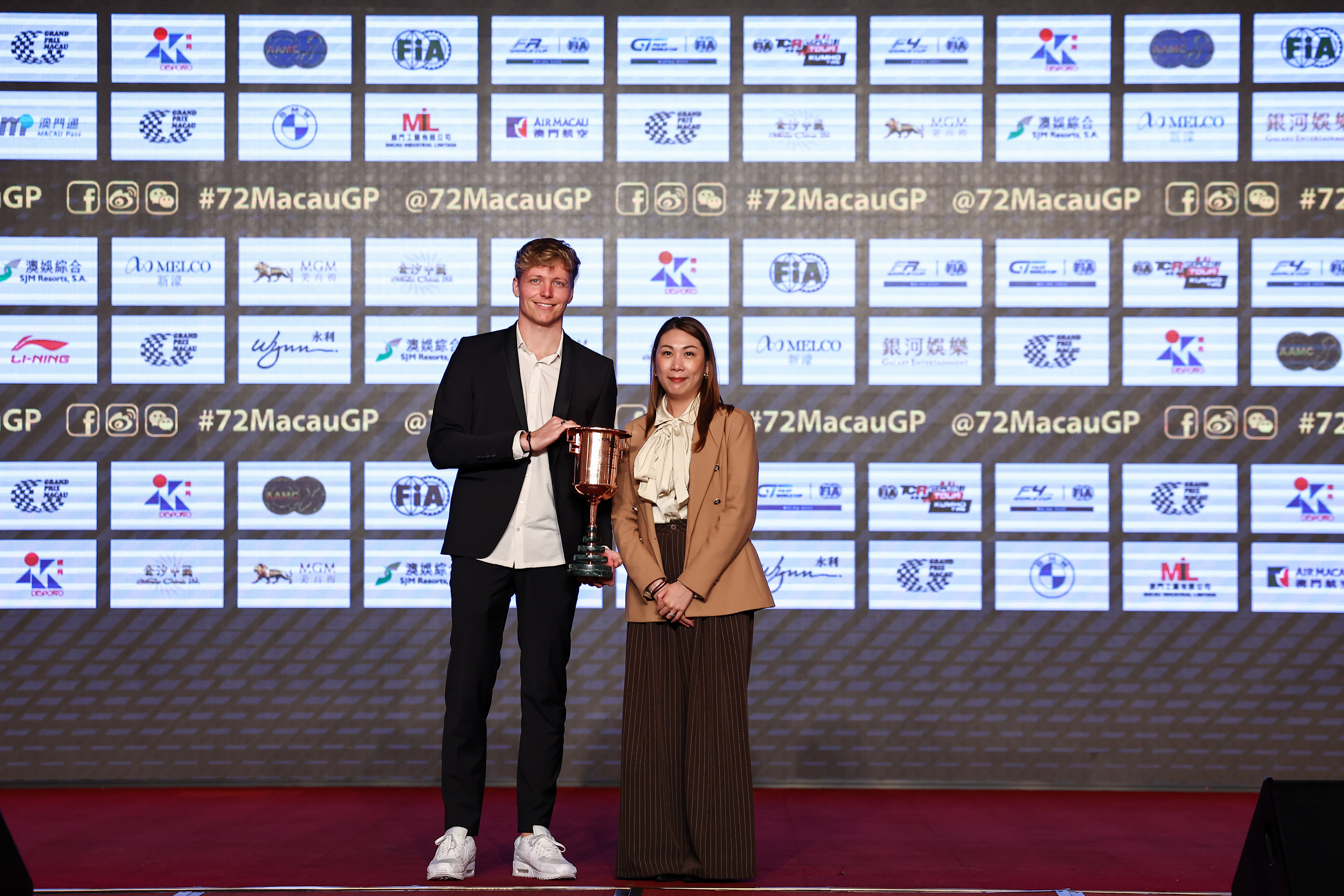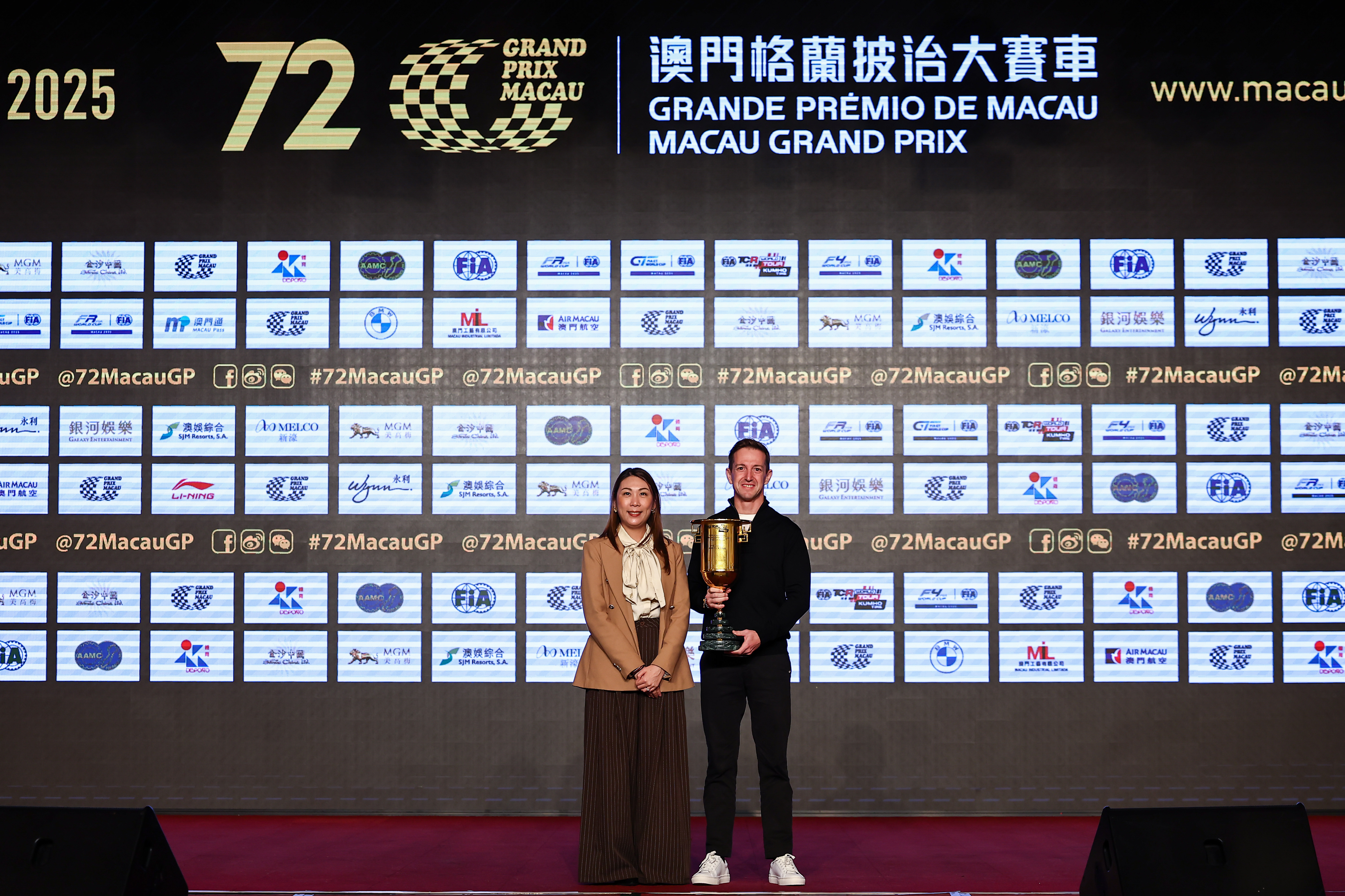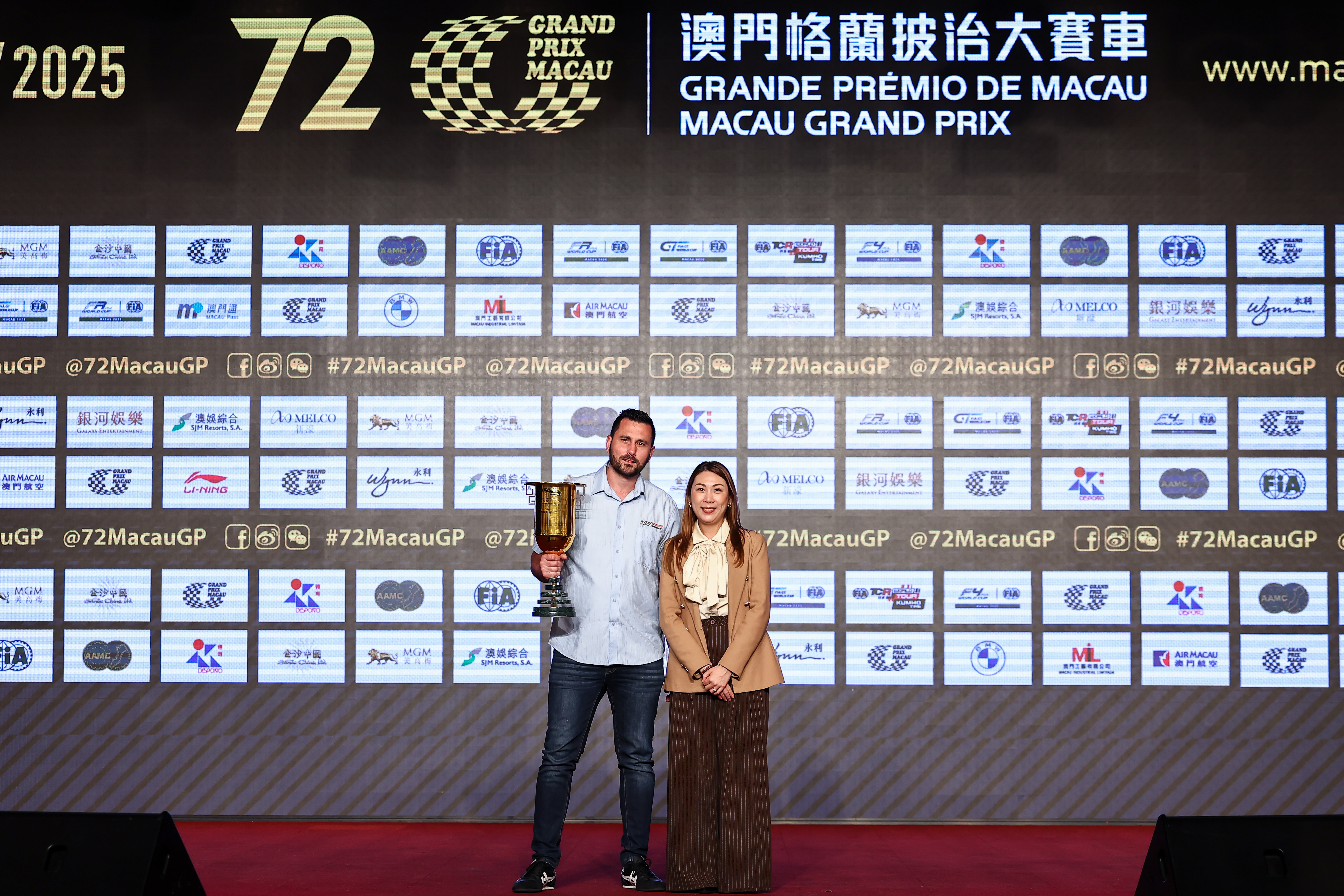 2025 TCR WT Macau prize giving, Aaron Grech representing Joh Buchan, winner of Race 2 - Photo: WSC/Jun Qian Motorsport